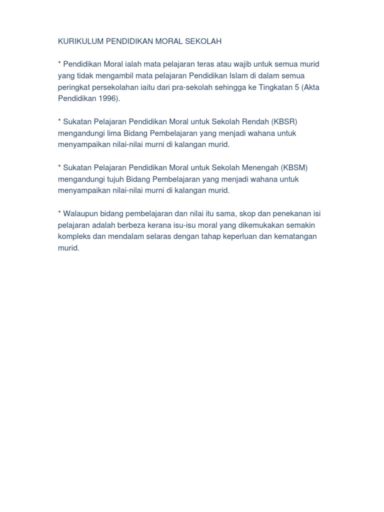 Kurikulum Pendidikan Moral Sekolah Pdf